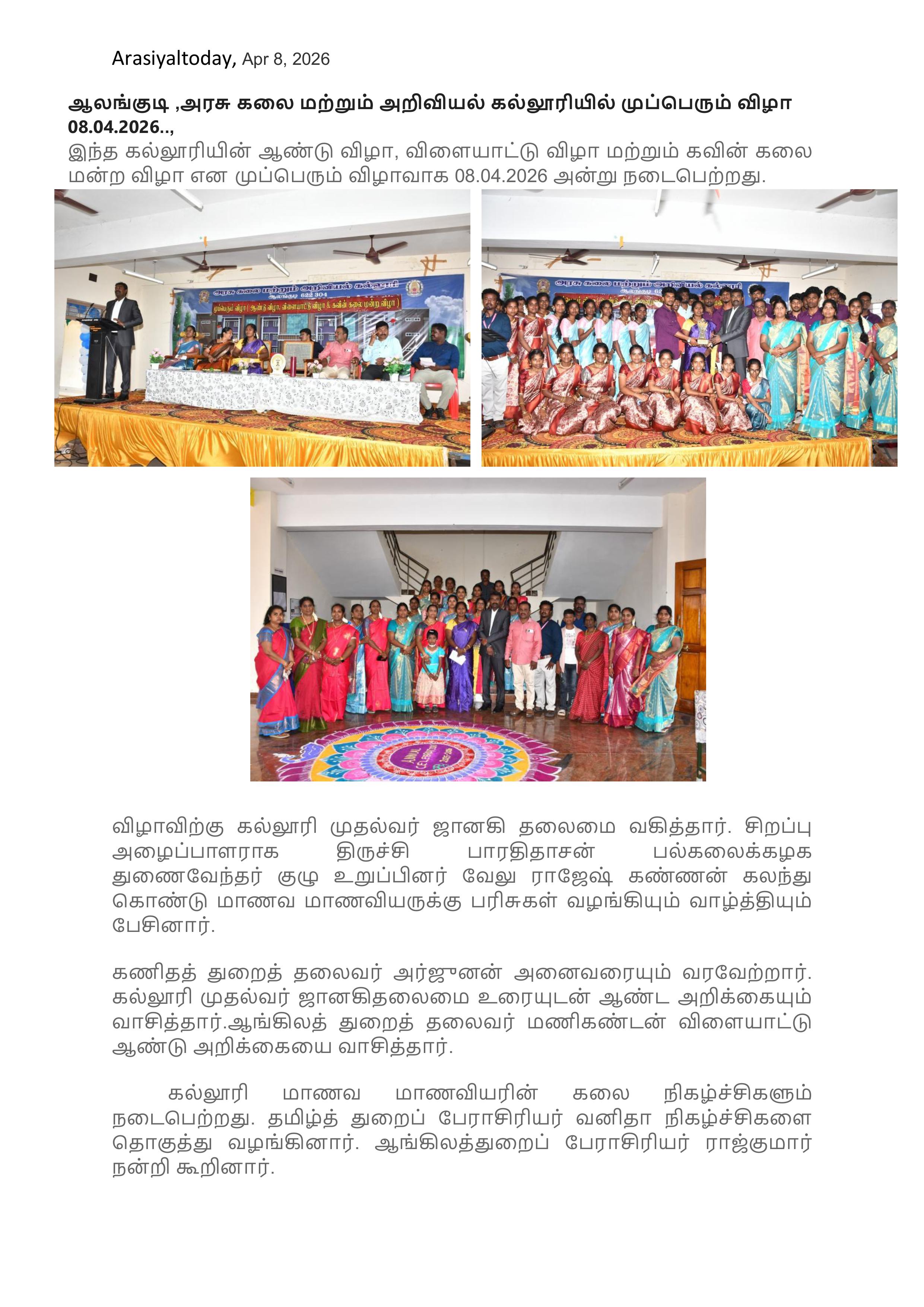 முப்பெரும் விழா(ஆண்டு விழா, விளையட்டு மற்றும் கவின் கலை மன்ற விழா)- 08.04.2026