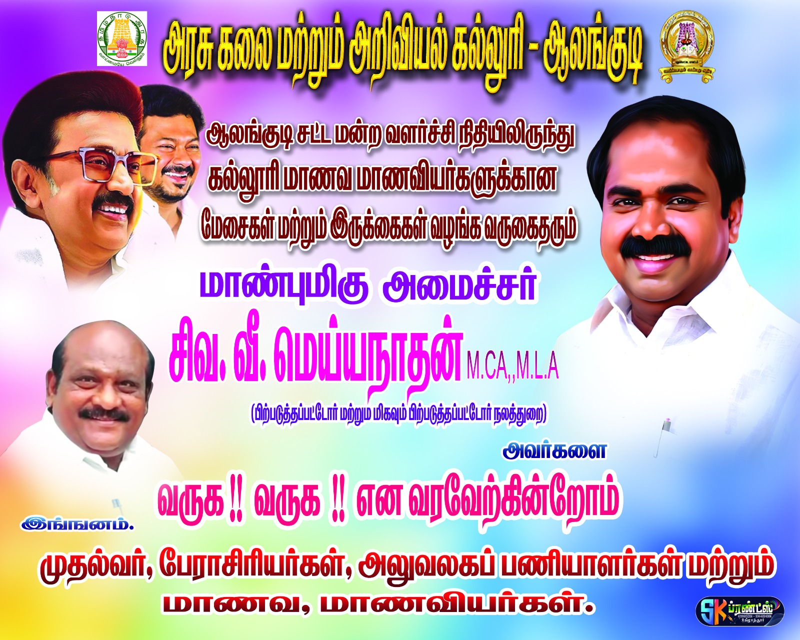 நமது கல்லூரிக்காக பத்து நாற்காலிகளை வழங்கிய ஆலங்குடி KNP மஹால் உரிமையாளர் திரு முருகேசன் அவர்களுக்கு எங்களது மனமார்ந்த நன்றி