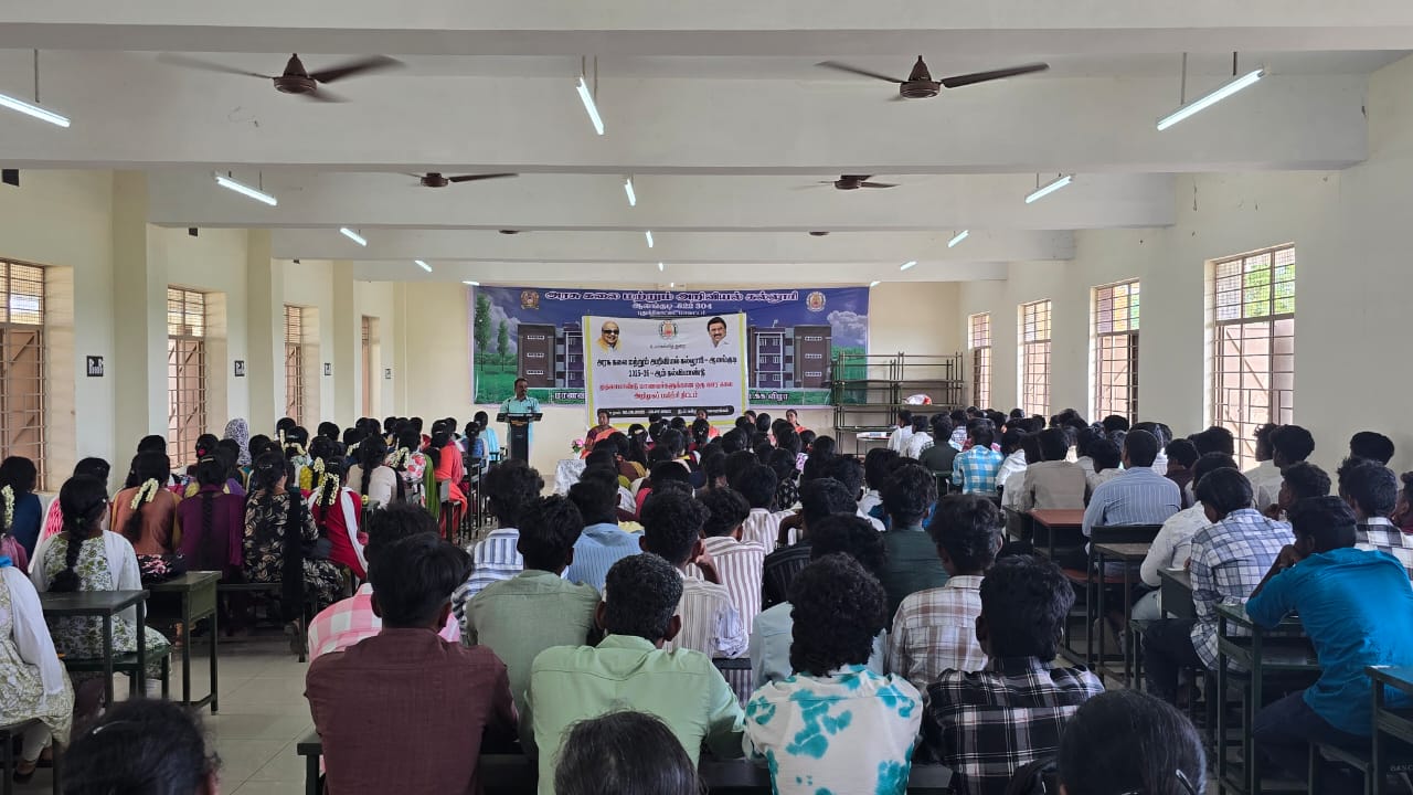 09.08.2024 அன்று நம் கல்லூரியில் நடைபெற்ற தமிழ்ப் புதல்வன் திட்டம் தொடக்கம் – அமைச்சர் மெய்யநாதன் அவர்கள் பங்கேற்பு