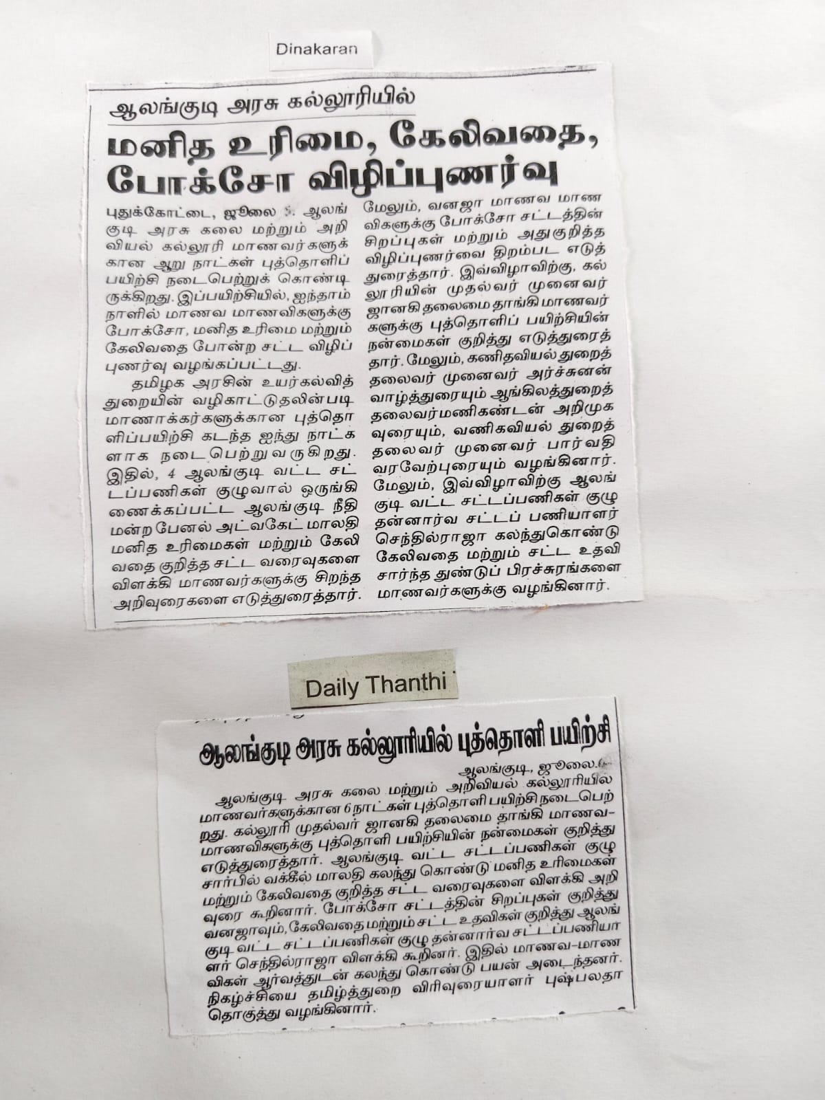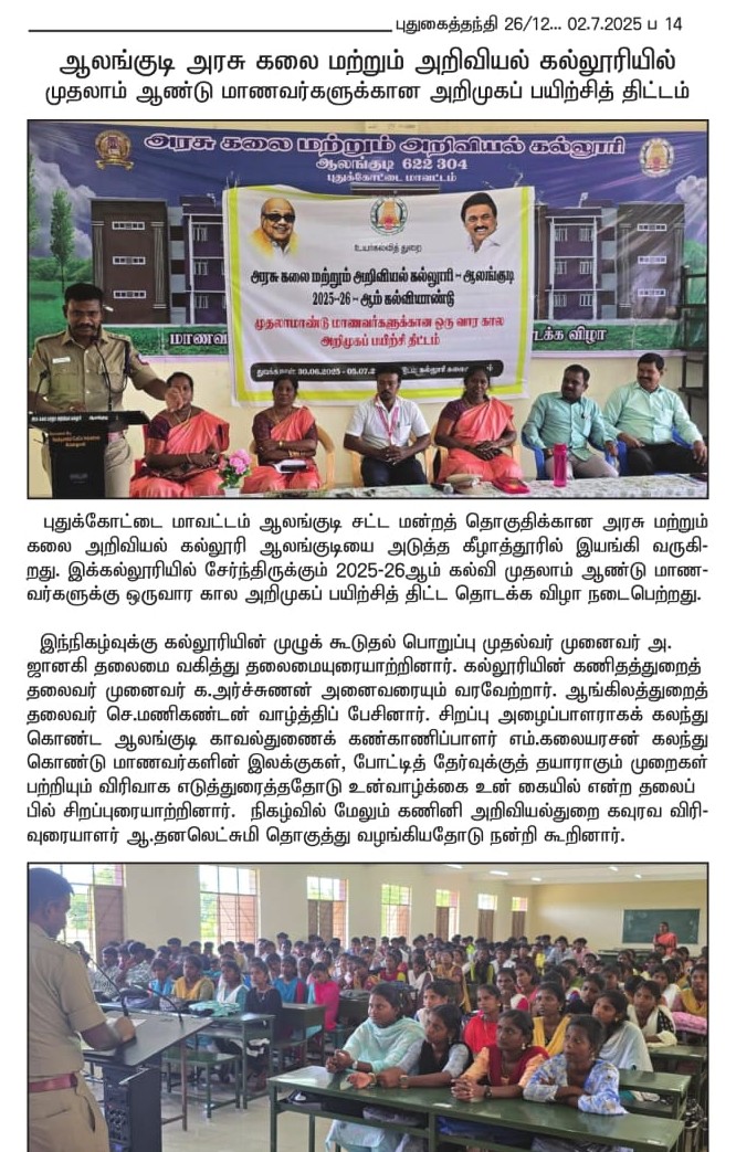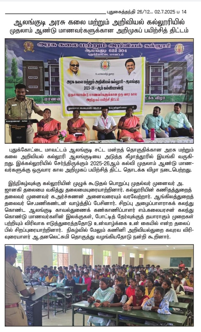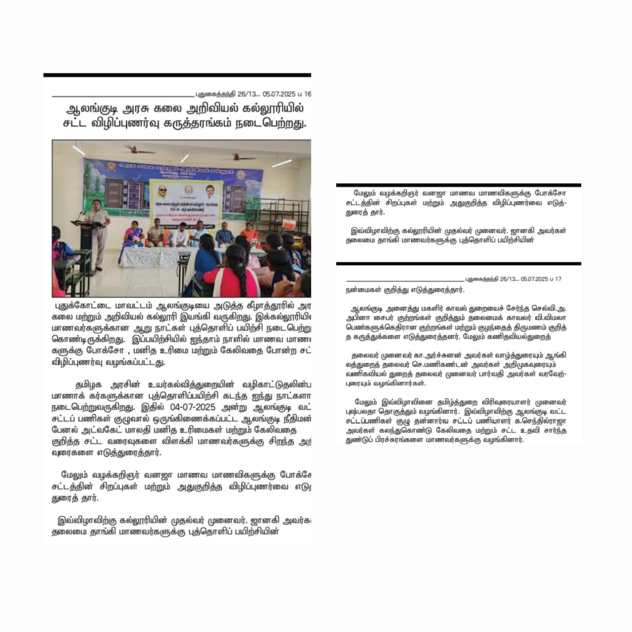 தமிழ்த்துறை - இதழியல் பயிற்சிப்பட்டறை (JOURNALISM) -12.08.2025