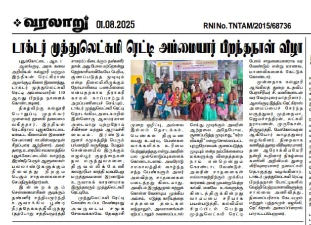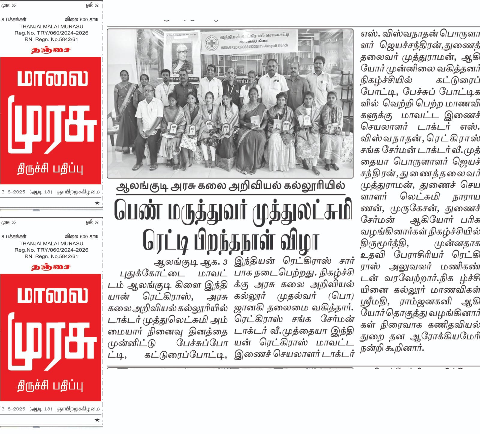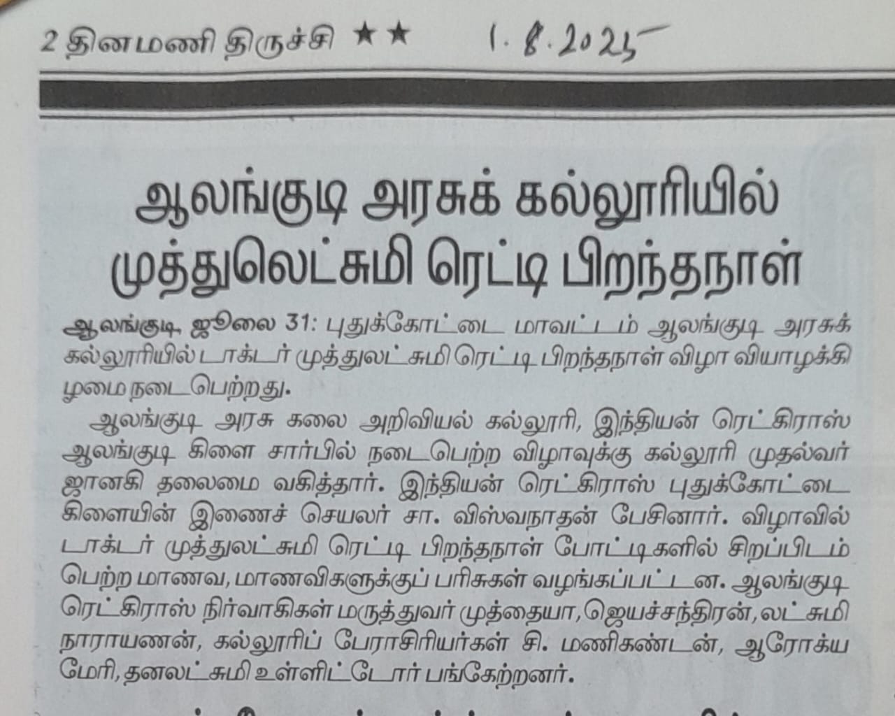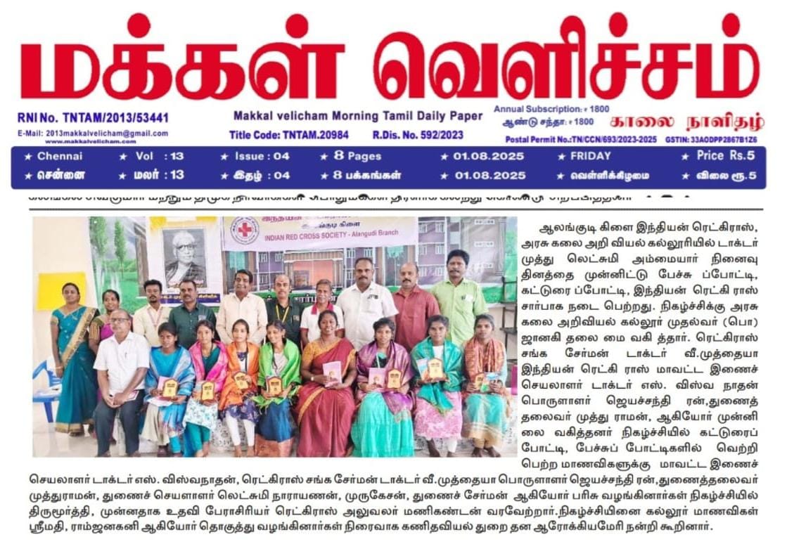 WOMEN'S EMPOWERMENT - Dr. MUTHULAKSHMI REDDY'S 140th BIRTH DAY CELEBERATION BY INDIAN RED CROSS - YRC -31.07.2025