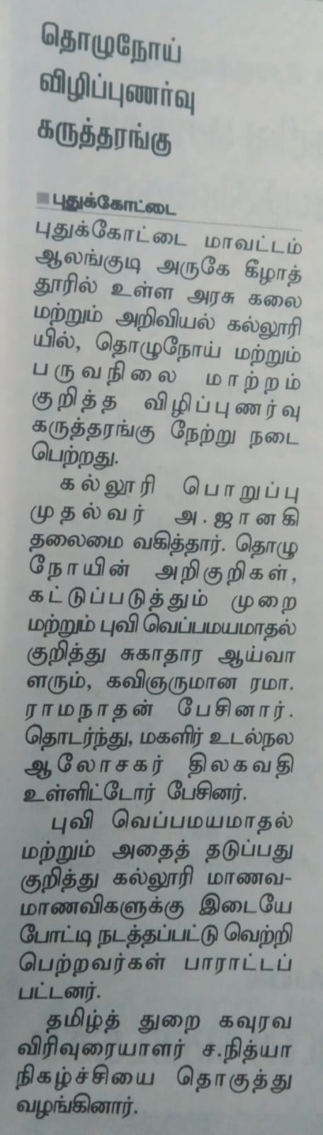 Our college got an award at Collector Office, Pudukkottai for PPS and TIPS - 06.03.2026