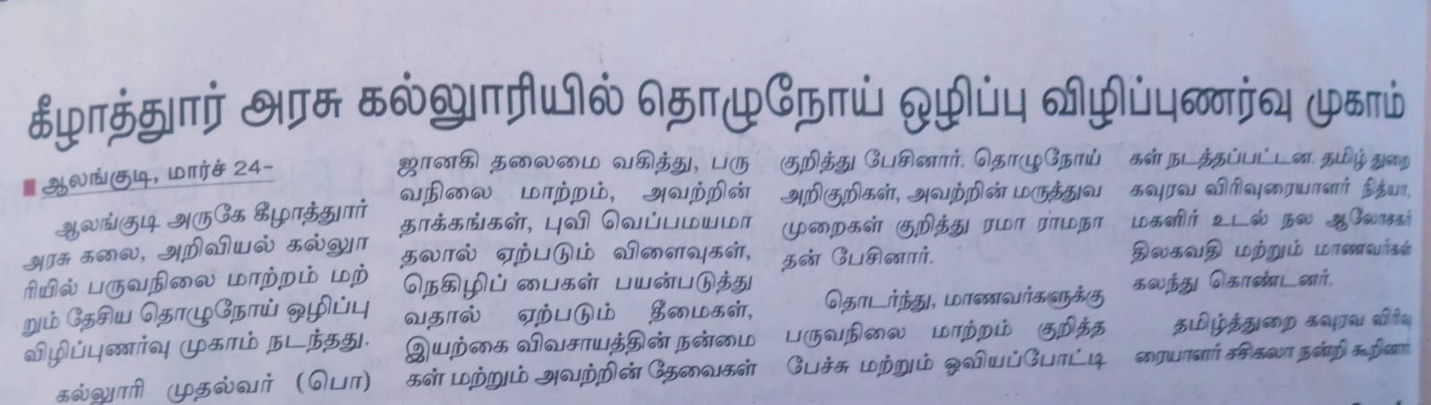 பருவ நிலை மாற்றம் மற்றும் தொழு நோய் குறித்த விழிப்புணர்வு நிகழ்ச்சி - 23-03-2026