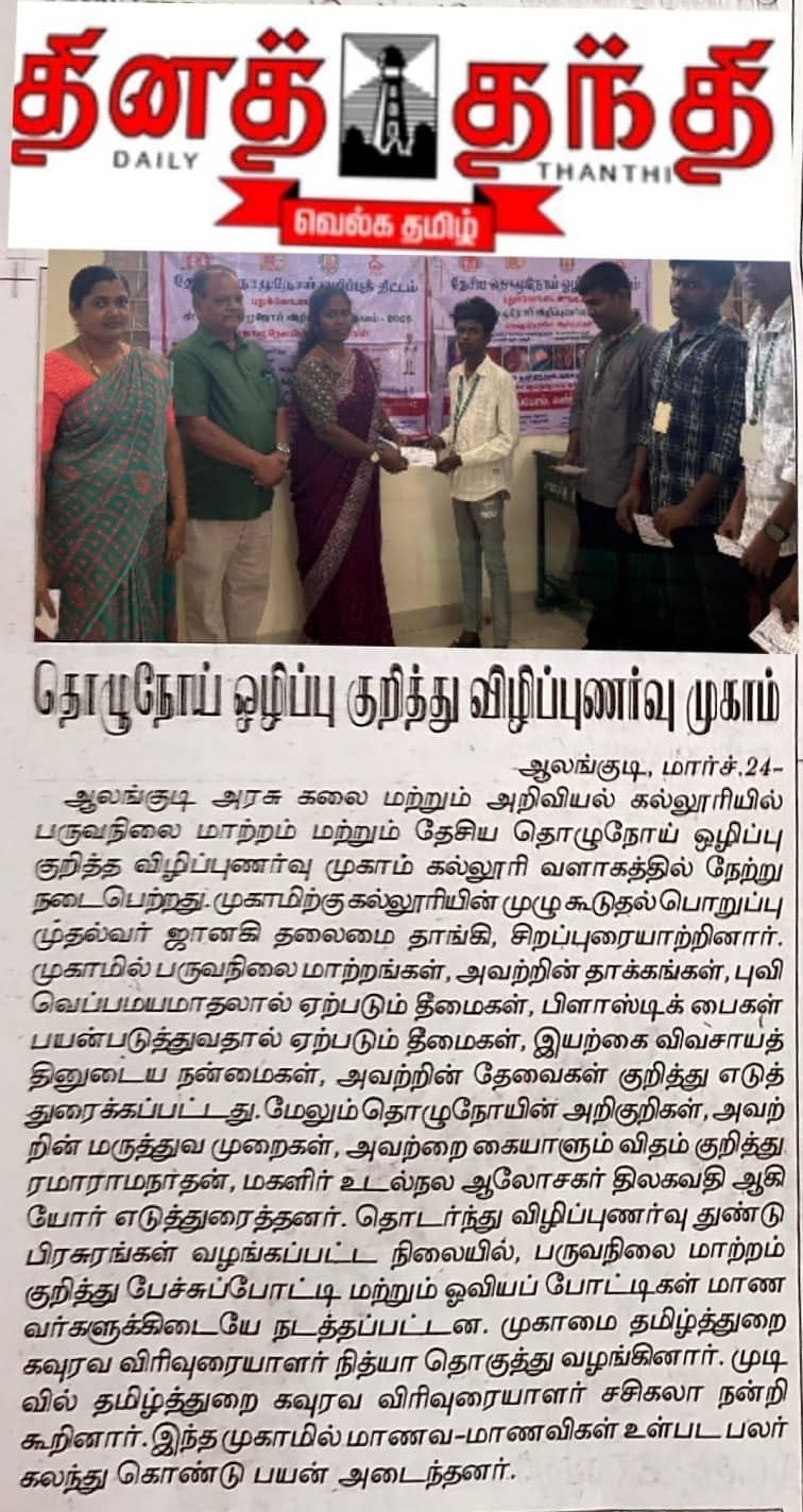 தமிழ் வளர்ச்சித் துறை நடத்திய பேச்சுப் போட்டியில் மாவட்ட அளவில் முதல் பரிசு பெற்ற நம் கல்லூரி மாணவி இர.சிவசங்கரிக்கு மனமார்ந்த பாராட்டுக்கள்