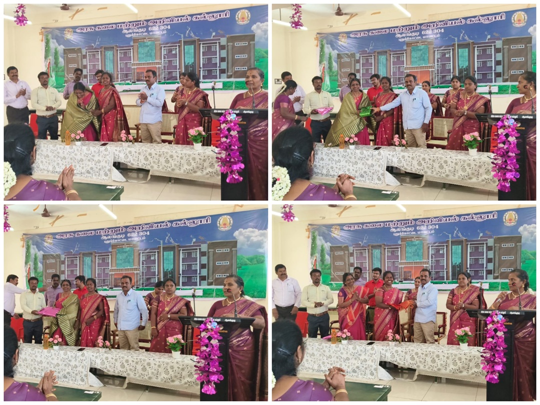 மாற்றுப் பணியில் பணிபுரிந்த தமிழ்த் துறை, கணிதத்துறை, இயற்பியல் துறை தலைவர்கள் பணியிட மாற்றம் - பாராட்டு விழா